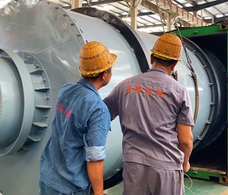 本公司高嶺土回轉(zhuǎn)窯依據(jù)筒體規(guī)格尺寸分為十一個(gè)型號(hào),范圍為?1.6×32m-?4×80m,筒體直徑2.2m以上(含2.2m)配輔助傳動(dòng),3.0m以上(含3.0m)支撐由三組變?yōu)樗慕M,窯轉(zhuǎn)速0.58-2.85r/min,斜度3.5-4.0%,配套主電機(jī)功率18.5KW-355KW,滿足時(shí)產(chǎn)2t-20t范圍內(nèi)高嶺土礦產(chǎn)品的煅燒需求。